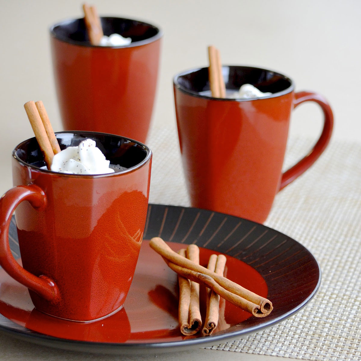 Pour the hot chocolate into mugs. Stir with cinnamon sticks and top with whipped cream and cinnamon, if desired.