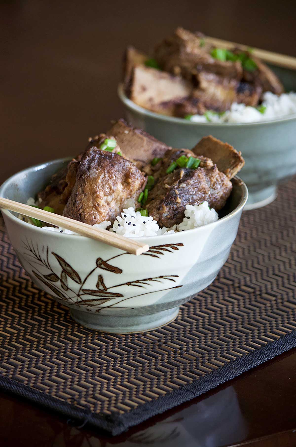 In a bowl, combine the remaining ingredients except green onion. Spoon over short ribs and toss to combine. Cover and cook on low to 10-12 hours or high for 5-6 hours until ribs are tender and falling off the bone. Sever hot with rice and garnish with green onions.