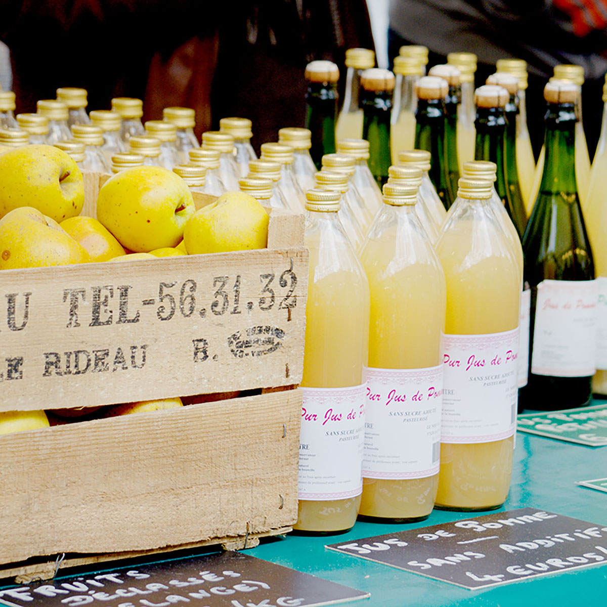 Visiting beautiful outdoor food markets – Marche d’Alma was recommended to us by our chef during our cooking class. Here is some famous French apple cider!