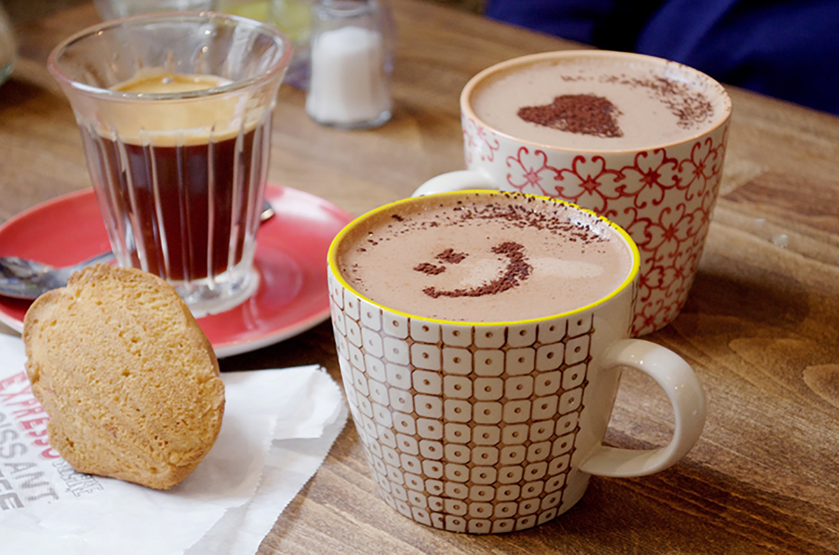 The art of people watching during breakfast – classically coffee and croissant. A Cafe outside Opéra national de Paris (home of the Phantom of the Opera)