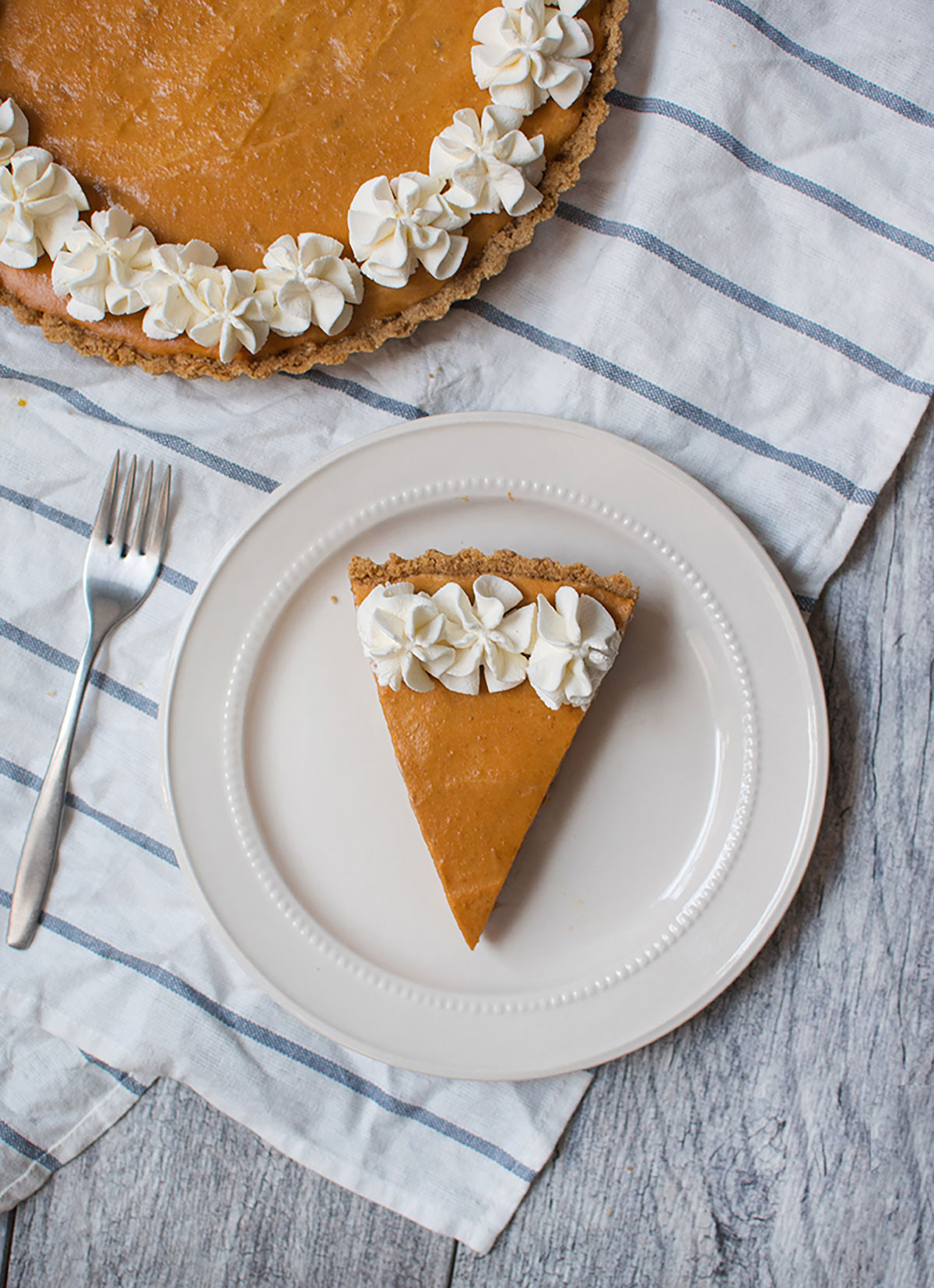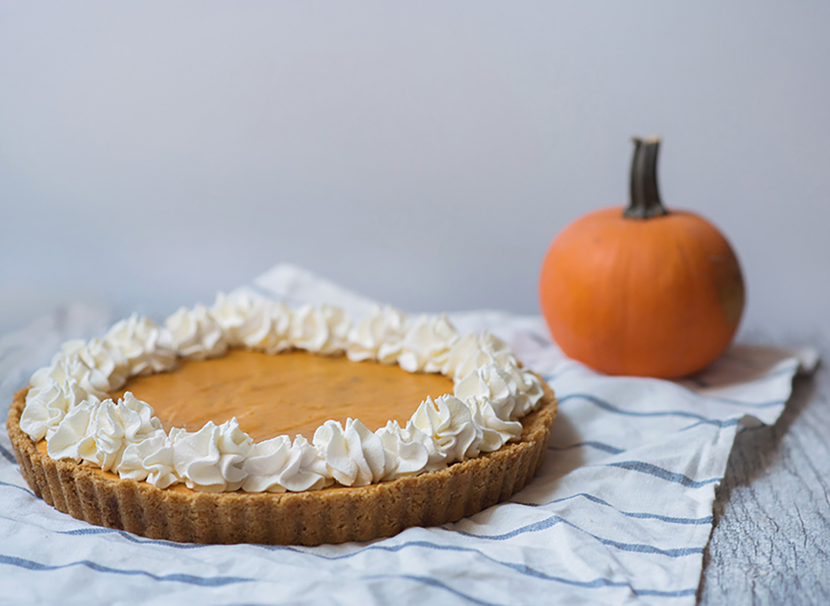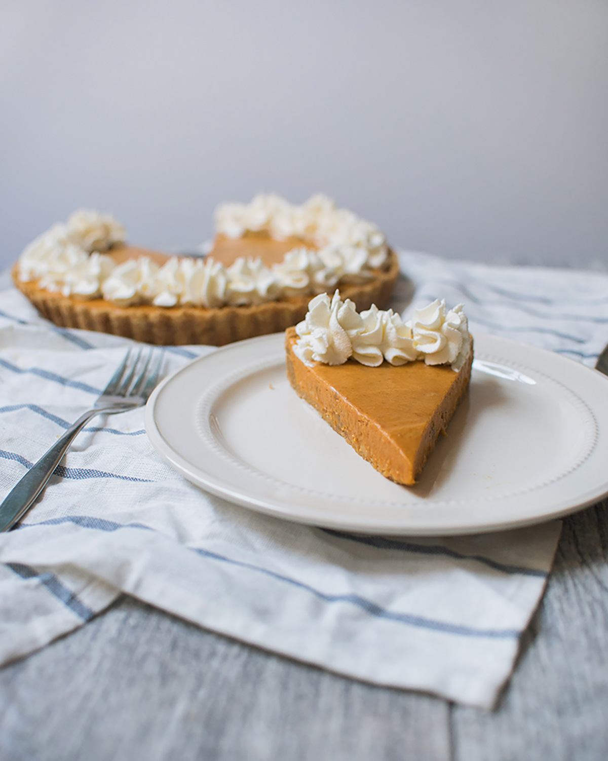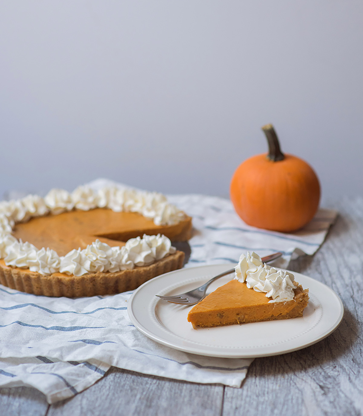 Whip the heavy cream in the bowl of an electric mixer fitted with a whisk attachment until soft peaks form. Add the sugar and continue to whisk until you have firm peaks. Carefully fold the whipped cream into the pumpkin mixture and pour it into the cooled tart shell. Chill for 2 hours or overnight.