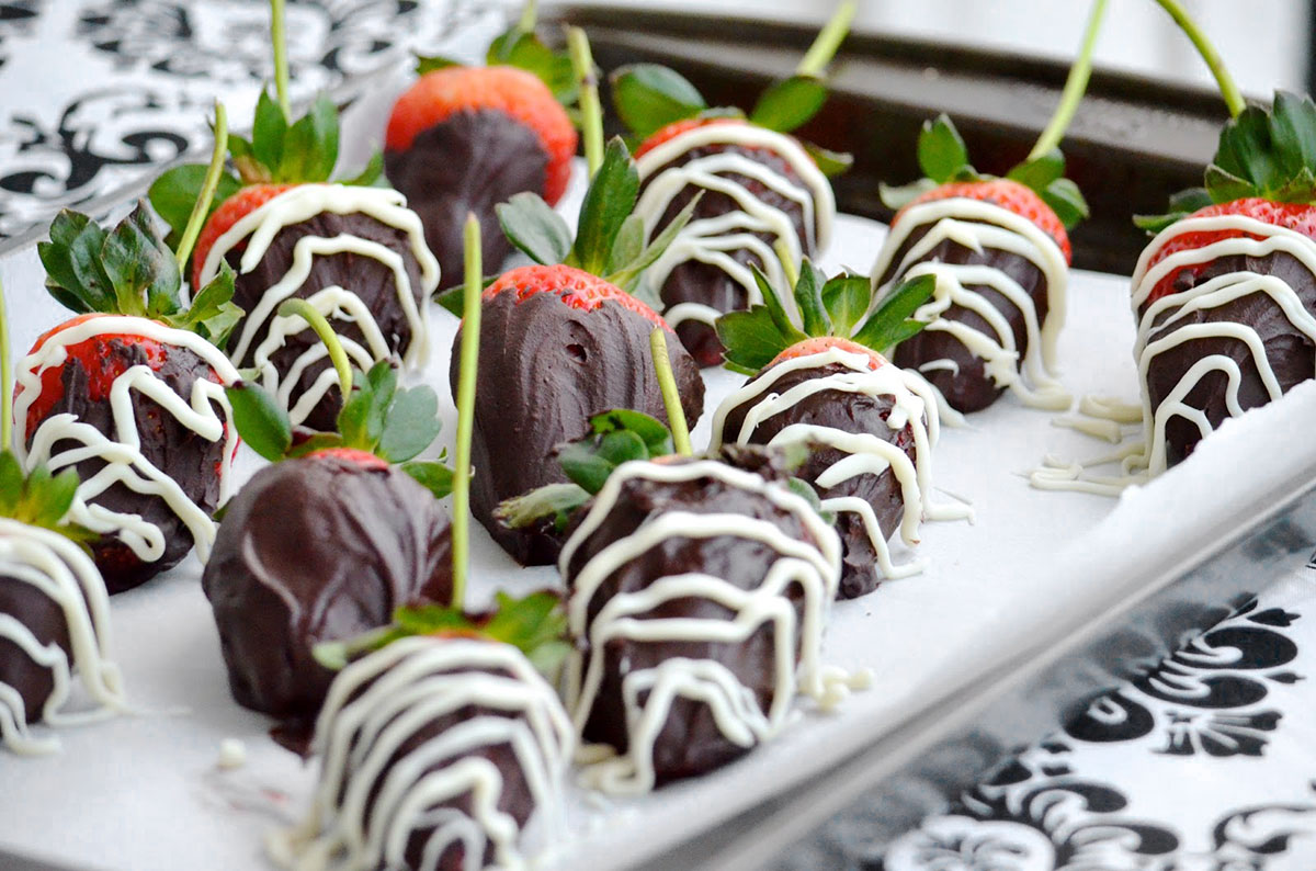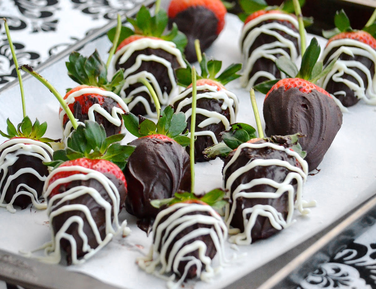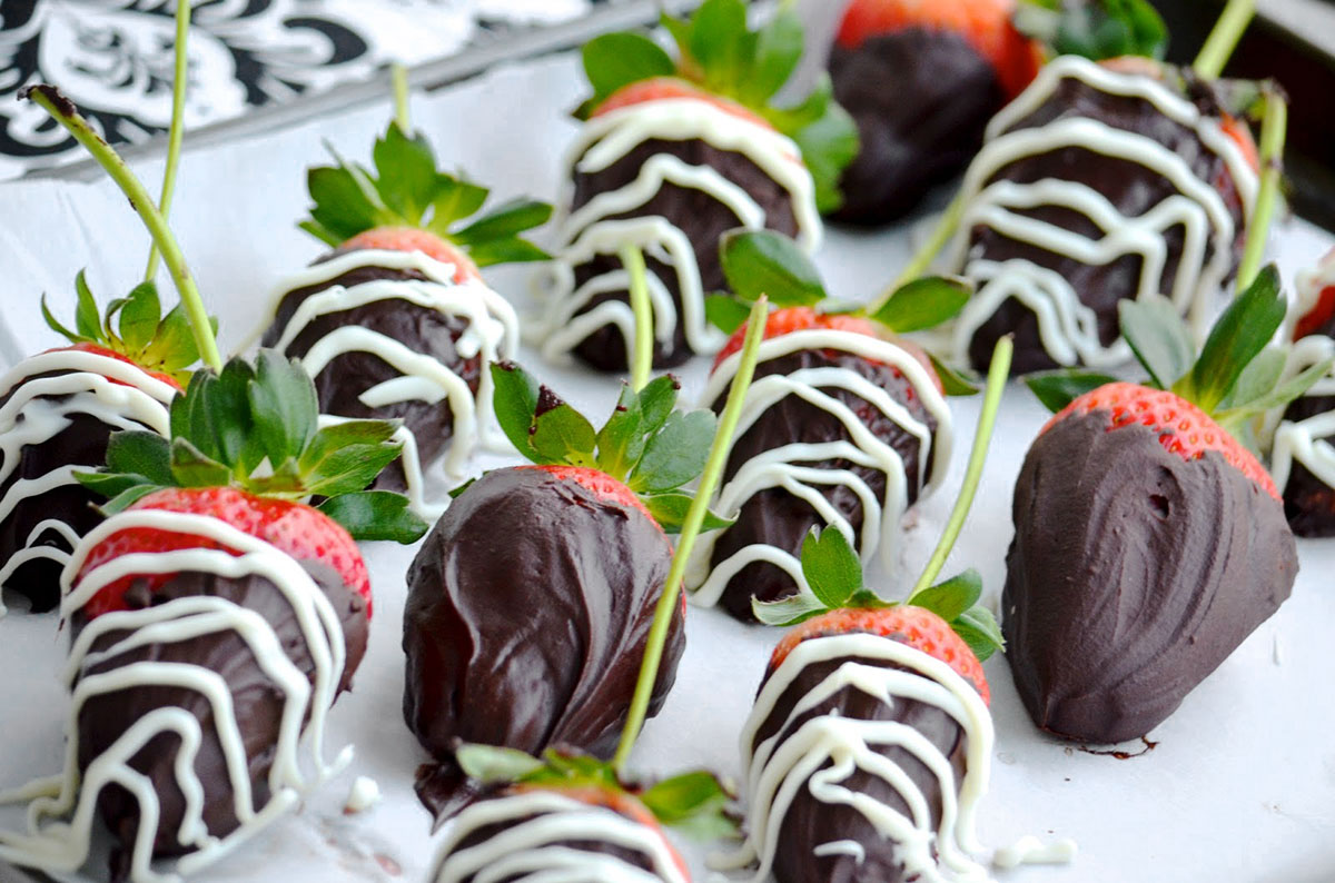 Scoop white chocolate in a ziploc bag and cut off the tip of the bag. Squeeze to stripe the white chocolate over the chocolate dipped strawberries. Chill the strawberries in a refrigerator for 20 min to let the chocolate set and enjoy!